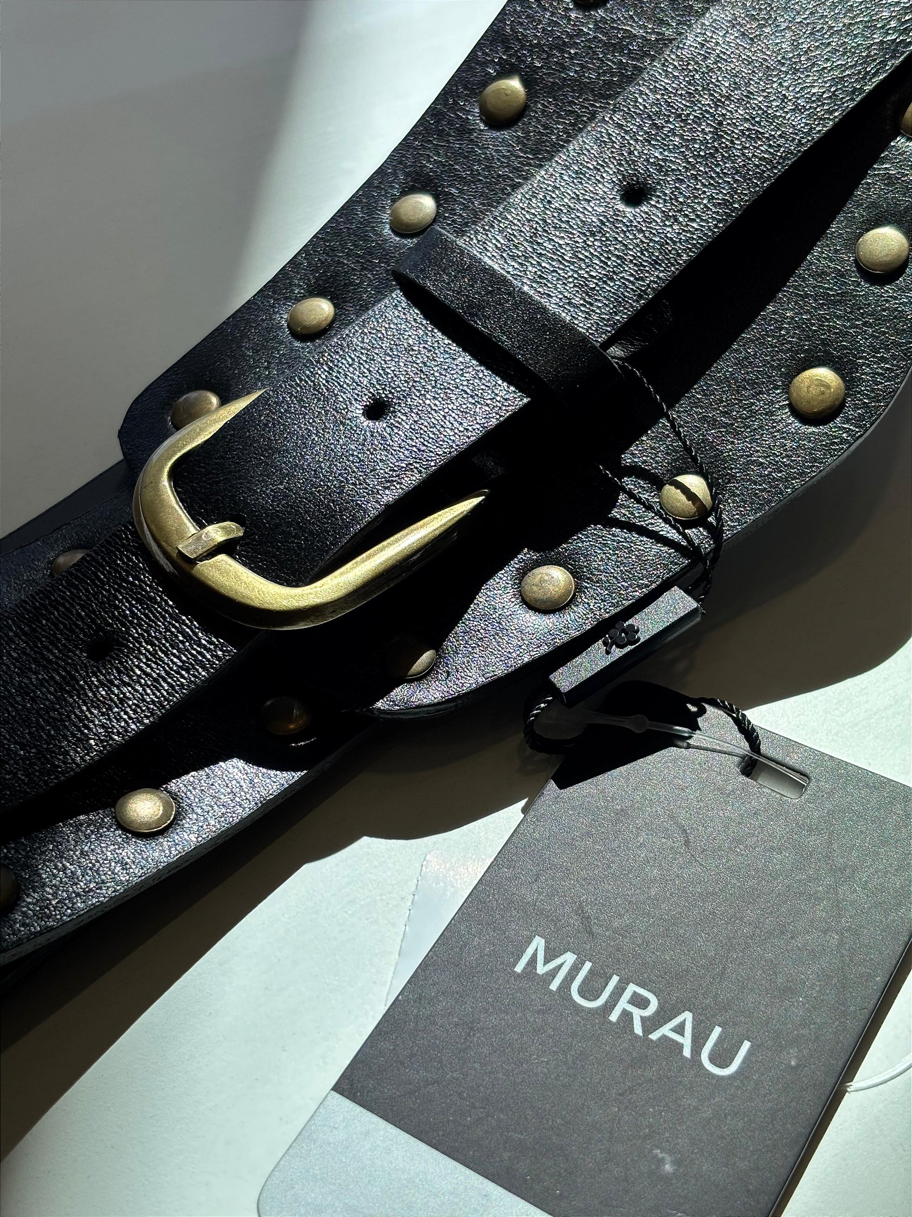 Cinto Largo Tachas Cor: Preto Tamanho: M Couro Legítimo