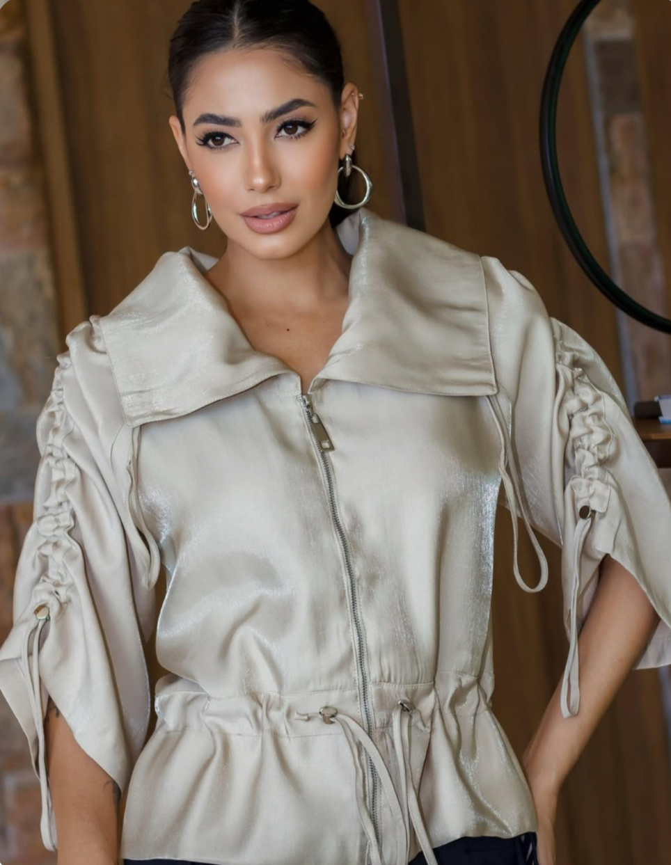 Jaqueta manga 3/4 com amarrações