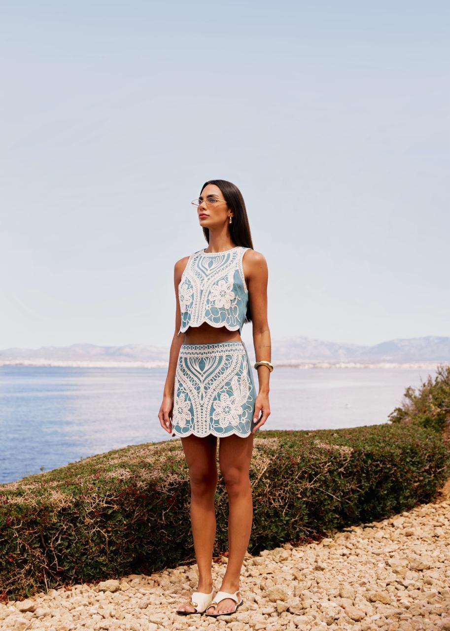 Mini-Saia Sarja bordada Marca: Murau Tamanho: 38 e 42