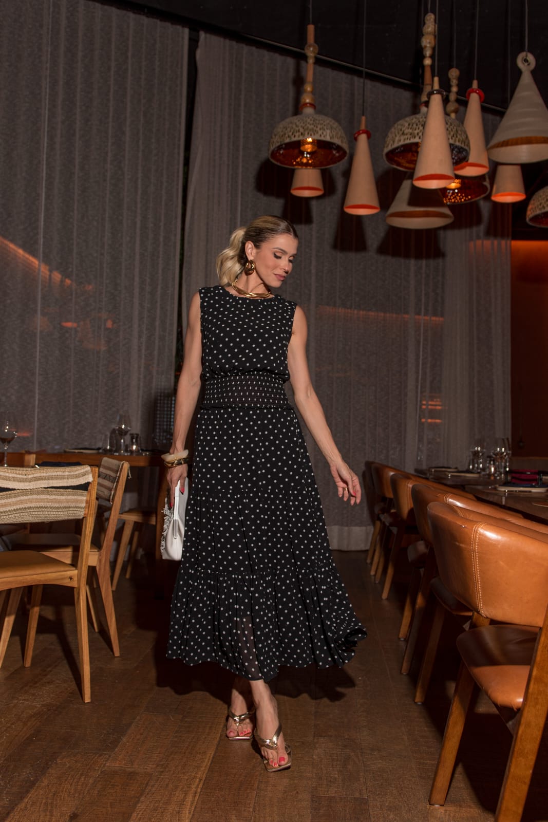 Vestido Chiffon poá Luzia Fazzolli Tamanho: 42